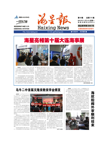 本报讯 10月23日-26日,第10届中国大连国际海事展览会于美丽的海滨之城大连举行。海星集团总公司携海星进出口公司、海欣阀门公司、苏州海星公司、大连分公司的精英们参加了此次展会。
