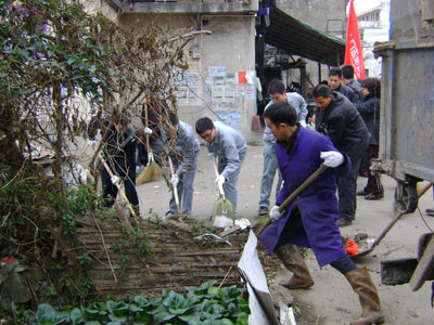 在环境卫生整治中,以码道村街道、公共场所、饭店、各类摊点,河边卫生死角以及新居民集中居住地为重点,分别进行了卫生清理、垃圾运送等清扫工作。志愿者服务小队还向该村村民和新居民发放文明卫生宣传资料,通过这种方式增强当地新老居民的环保意识。