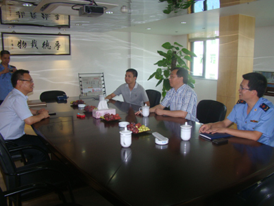 本报讯 7月9日,县工商行政管理局局长王少敏携办公室主任陈建枢、乌牛工商所所长戴金强、副所长周建勋莅临集团公司调研、考察,董事长傅文隆接待。