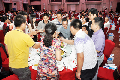 推介会一开场,海星集团董事长傅文隆首先对各位领导致以诚挚欢迎:“真诚感谢各位军事代表室、船东、船厂、船检、设计院的领导以及社会各界朋友一如既往地鼎力支持,海星集团能有今天的发展离不开在座各位的热诚帮助。我们希望通过此次产品推介会,使大家能够更好地、全面地进一步了解海星海事电气集团的发展历史、销售网络以及发展宏图,并与各位维系友谊,使海星人能够有机会为大家提供更好的服务,进一步拓展船舶配套领域的合作。”傅文隆说,“现在船舶市场行情低靡,海星海事电气集团将继续加强产品宣传、提高科研水平、保障产品质量,给顾客以最满意的产品和服务。”全场人员对傅文隆的开场讲话投以最热烈的掌声。晚宴在海星海事电气集团董事长傅文隆、中国人民解放军驻广州地区军事代表局柯和海政委、中华人民共和国南海渔政渔港监督管理局副局长郭锦富、中华人民共和国广东省海事局技术装备处处长余灵和中海散货运输有限公司技术主任苏文伟一同启动水晶球中正式开始。
