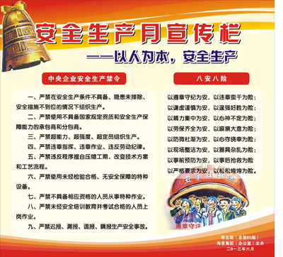 今年六月是国家第12个安全生产月,主题为“强化安全基础,推动安全发展”。安全是一个永恒的主题,它是人类最重要、最基本的要求,安全生产既是人们生命健康的保障,也是企业生存和发展的基础,更是社会稳定和经济发展的前提条件。