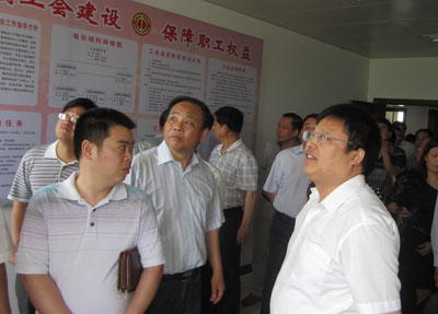 此次考察团主要围绕企业“基层工会组建规范化”的推进工作展开。在海欣船阀公司工会主席许杭春的陪同下,大家依次参观了公司的宣传栏、样品室、员工活动室、会议培训室、员工阅览室等场所,在工会主席室,大家查看了工会档案、台账和工会活动图片,许杭春向各位领导介绍详细介绍了公司工会成立的过程、工会组织的结构、工会制度的建立和各项活动的开展等情况。县领导和参观人员对海欣船阀公司工会所取得的成绩表示肯定,并希望企业能充分发挥工会的职能作用,为企业经济发展发挥更大的作用。许杭春/图文
