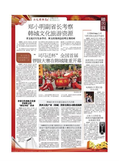 韩城历史悠久,古迹荟萃,有“文史之乡”的美誉。陕文投集团立足整合文化资源、激活产业能量,积极与韩城市谋求合作。韩城市政府依托优势资源,对联合陕文投集团开发文化旅游资源充满了信任与信心。全国首届锣鼓大赛在双方的共同努力下成功开幕,对于推动韩城文化产业发展,提高陕文投的知名度和影响力都具有重要意义。