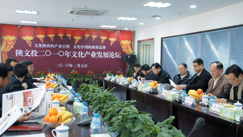 新年伊始,万象更新。2月5日, “文化陕西的产业引擎,文化中国的西部先锋” ——陕文投2010年文化产业发展论坛隆重召开。公司总经理王勇、党委副书记马湘云、副总经理李振林参加会议。论坛由马湘云主持。