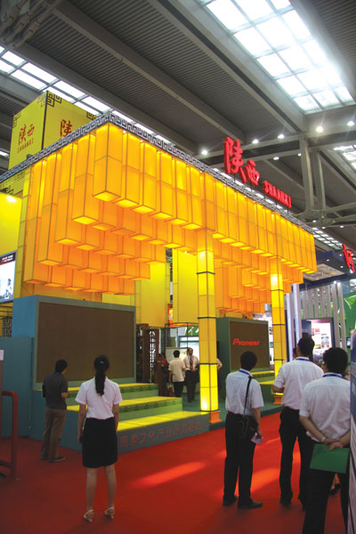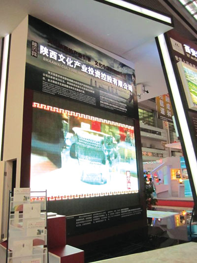陕文投公司与曲江新区组团参展。精心设计的展区、专业的项目推介、高科技的手段运用让联合展区成为观众驻足翘首的焦点。整个展馆恢宏大气,以纵横相交的结构,巧妙地将看似独立的六大文化板块精妙组合,共同构成“文化曲江”的大环境,具有强烈的时空交错感。更令人惊叹的是,整个展馆的地面由70块拼接屏组成,拼接屏上不断滚过飘动的蓝天白云,将整个展馆打造的美轮美奂。观众在展区中,犹如置身大自然的怀抱。笔者现撷取部分展馆,与大家分享所 获。