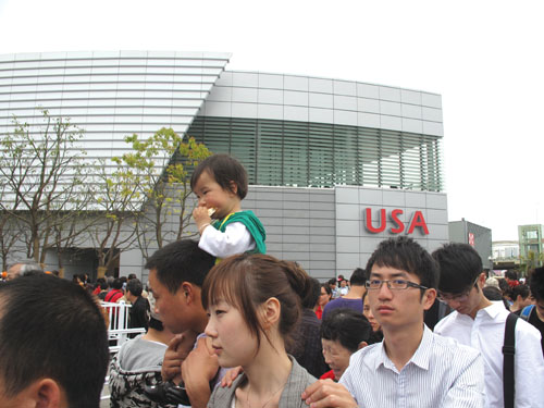 直到碰巧找到一个场外人数不是太多(周五当天只需排队约40分钟),外观设计也不是过于华丽的场馆——美国馆。
