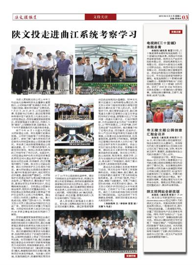 通过这次走进曲江系统的考察学习活动,陕文投全体干部员工深受鼓舞和启发。对曲江精神、曲江模式、曲江经验和曲江速度有了更为深刻的体验和感受。进一步开阔了眼界,开拓了思路,增强了创新意识。实现了与曲江团队的对接,关系更加密切、融合。陕文投公司的许多项目经过大半年的调研论证,已经到了大干快上的重要时刻,曲江三大板块的实践为陕文投提供了鲜活的经验,这次活动对下半年破解各类难题、狠抓项目落实具有巨大的促进作用。