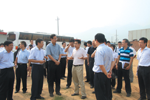 进入西安曲江楼观道文化展示区,首先进入视野的是财神文化展示区项目的繁忙景象。通过参观楼观展示区的总体规划沙盘模型、财神文化展示区建设工地和楼观台景区后,陕文投公司学习组对西安曲江楼观中国道文化展示区有了深入的认识。在参观学习中,曲江管委会副主任、曲江楼观道文化展示区管理办公室主任李益民向我们介绍道,楼观展示区以“打造中国一流道文化展示区,打造引领西部、示范全国的农业示范区”为发展定位,以“两年成景点、三年成气候、四年名扬全国”为近期目标。他还着重介绍了在观光农业、项目融资、征地拆迁、投入产出分析和宣传策划方面的主要措施,以及展示区在面对时间紧、任务重等困难,超常规工作的做法。楼观展示区管理办相关负责人分别介绍了展示区总体开发和大会战情况,农业公司在打造生态观光农业、探索城乡统筹、建设社会主义新农村等方面的发展思路和目前进展。陕文投公司员工就土地流转、规划策划、招商引资、以及与当地政府合作就等项目运作的热点、难点进行了积极提问,得到了展示区负责人的细致回答和讲解。