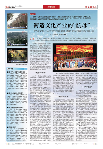 11月3日出版的《人民日报》第十一版刊发题为《铸造文化产业的“航母”》的署名文章,深度剖析了陕文投这艘“文化航母”铸造的艰辛之路,并通过三个层次六大关键词解读了陕文投跨越式发展的模式,本报现将全文予以刊载。
