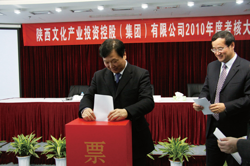 本报讯(通讯员 李保林)1月6日,由省委组织部、省委宣传部、省国资委和省财政厅联合组成的省属国有文化企业考核组到陕文投集团考核2010年度工作。考核组组长、省委理论讲师团团长、省委宣传部干部处处长鲍贻勇作动员讲话。陕文投集团董事长、党委书记段先念主持考核会,党委副书记、总经理王勇代表领导班子作2010年度工作总结和班子自查报告。集团领导班子成员王勇、马湘云、周冰、李振林、李元分别作个人述职述廉报告。集团公司中层干部、各下属公司负责人、集团全体专员级以上员工参加了考核大会。