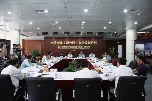 中央民族大学历史系副教授蒙曼作为帝陵主题公园项目首席文化策划,全面介绍了穿越秦岭、丝绸之路、地下王国、盛世之光、长安风情五大板块的主题、结构和文化内涵。著名文化学者肖云儒、同济大学文化产业战略与规划研究中心主任朱大可、原秦陵考古队队长段清波、原陕西省考古研究院院长焦南峰、原陕西省考古研究所副所长王占魁、西北大学地质系教授董云鹏、中国建筑西北设计研究院总建筑师赵元超、西安晚报高级编辑郭兴文围绕项目文化策划方案进行了热烈研讨,从考古、建筑、地质、文化、旅游、文物等多角度提出了许多极具参考价值的好建议。
