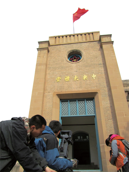 《我们在延安》摄制组在杨家岭拍摄中央大礼堂