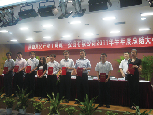 会议首先听取了韩城公司总经理汪舵关于陕文投韩城公司2011年半年度的工作汇报,并表彰了公司上半年优秀员工,颁发了荣誉证书。韩城公司员工结合各自工作实践,进行有针对性地总结讨论。陕文投韩城公司董事长周冰指出,韩城公司作为“史记韩城·风追司马”景区的开发企业,既要有格局,又要出形象,做出实际成绩;精细谋划,创新巧干,认真分析任务的难易利弊;扎根一线,真抓实干。同时,周冰指出,下半年的工作重点:第一,启动史记长廊大型土雕项目,完成500米土雕形象进度;第二,启动古城相关城中村的拆迁工作,动工建设古城四个城门楼;第三,全面启动安置小区设计与建设工作。周冰强调,“史记韩城·风追司马”景区建设前景广阔,同时任务非常艰巨,韩城公司要攻坚克难,全力以赴,以饱满的热情投入到景区建设当中去,圆满完成各项目标任务。