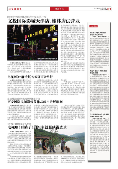 本报讯(通讯员 卢春峰)经过近一年的努力,陕文投集团“电影院线”项目迈出了坚实的第一步,取得了阶段性成果。7月23日、28日,文投国际影城天津店、榆林店先后进入试营业。