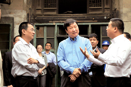 陕文投集团董事长段先念(中)、韩城市市长张建中(左一)考察韩城景区古城改造项目