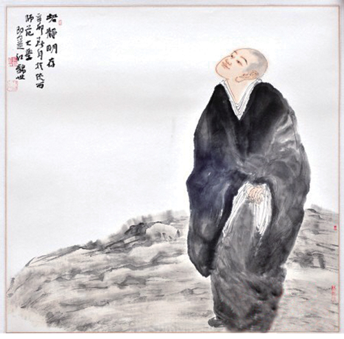 【江锦世:陕西师范大学硕士生导师。毕业于陕西师范大学,师从范曾、余乡等。作品年轻小僧题材得到藏家好评。】