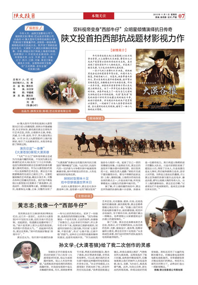 今年8月,由陕文投影视公司下属陕西文投(影视)艺达投资有限公司出品的40集大型年代传奇抗战剧《大漠苍狼》在宁夏隆重开机,该剧是一部极具西部特色的年代抗战大戏,既开创了西部抗战戏的先河,又展现了大漠抗日英雄的传奇故事。目前,剧组主创已转战上海进行拍摄,该剧预计11月初完成全部戏份,2013年登陆北京、山东、天津、浙江、云南、辽宁、四川、江西、河南、黑龙江等全国各大卫视,全面推动陕文投影视“立足西部、走向全国”的发展之路。