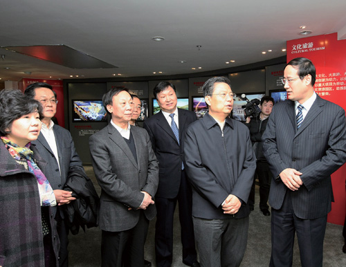 本报讯 2月14日上午,省委书记赵乐际在西安曲江新区调研文化产业发展情况时,到陕文投集团考察指导工作。省委常委、西安市委书记孙清云,省委常委、省委秘书长魏民洲,西安市委副书记、代市长董军,省财政厅厅长刘小燕,省交通运输厅厅长冯西宁等陪同调研。