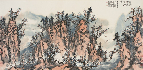 他作品中巴蜀文化的影子,有点鬼文化的那种感觉,因为他出身于丰都这个地方。他在抒情的同时,隐隐约约有一种奇异的感觉,这是他与长安画派不太一样的地方,看他的画,你总是觉得有一种很奇异的东西,如他画中的黑山。(王炎林)