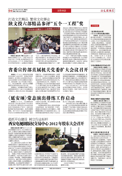 | 陕文投文化创新沙龙助推企业发展 | 陕文投六部精品参评“五个一工程”奖 |
