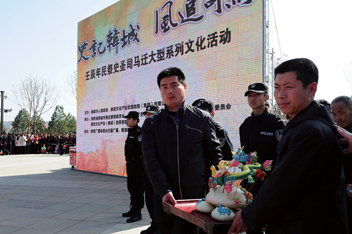 陕西韩城“史记韩城·风追司马”文化景区举办的“司马迁祠楹联及民祭司马迁祭文全球征集”活动顺利结束。此次征集活动从2月25日开始至3月25日结束,历时1个月。期间,共收到来自新加坡、马来西亚、菲律宾、泰国、巴西、韩国、加拿大、荷兰、日本等国及我国各省、自治区、直辖市的楹联、祭文作品共1500余幅。著名学者、第六届茅盾文学奖得主熊召政投寄的楹联和祭文作品,包揽楹联、祭文两个特等奖。3月31日,“史记韩城·风追司马”民祭大典上楹联挂上司马迁祠“高山仰止”牌坊,同时祭文特等奖作品被刻成石碑后驻于司马迁祠下,并作为以后每年民祭司马迁大典的固定祭文。