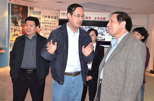 张国有教授一行参观了集团重大成果展示中心,详细了解了陕文投在文化园区、文物复仿、书画交易、影视传媒、文化科技、文化活动六个方面的工作规划和项目进展等情况,对集团成立两年来取得的业绩表示高度赞赏。张国有教授还了解了陕文投未来的发展规划、人才招聘及人员构成等问题。同时,张国有教授与集团领导就陕文投集团与陕西省文物局联合发起筹建“陕西中华文物创意产业研究院”的构想进行了深入交流。