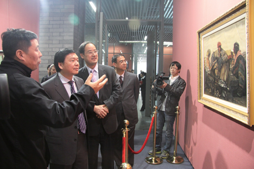 省政府副秘书长陈国强,省委宣传部副部长、省文联党组书记刘斌,延安市市长梁宏贤等领导陪同考察,陕文投集团董事长段先念、总经理王勇陪同并介绍书画中心有关情况。