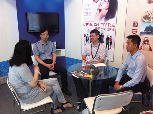 本次参展,版权交易中心首次设立独立展位,通过剧目册、宣传刊物及视频资料,全面展现了其业务项目、平台理念和价值愿景。电视剧《哑女》、《宝贝儿回家》、《踮起脚尖吻到爱》、《给你生命给我爱》、《西安故事》、《我叫秦biangbiang》等电视剧及原创项目的亮相,吸引了众多播出机构前来洽谈,同时引起剧作者、影视投资者、制作公司、海外发行机构的充分关注。现场接洽的意向合作客户达百余家,包括中央电视台电视剧频道、湖南广播电视台、浙江卫视、辽宁卫视、河北卫视、海峡卫视、河南卫视、山东电视台、黑龙江电视台、越南电视台、柬埔寨电视台、泰国电视台及乐视网、土豆网等国内外播出机构。其中,大型人文纪录片《问道楼观》、《黄帝》、《西安2020》等深受海外市场的青睐;《21世纪家族》、《婚姻的策略》等最新出品的韩剧吸引了央视8套海外剧场的强烈关注;苦情励志剧《哑女》备受河南、安徽、黑龙江地方电视台的喜爱;大型公益电视剧《宝贝儿回家》尚在拍摄阶段就已被各大卫视预定抢购;陕西本土动漫项目《我叫秦biangbiang》获得浙江卫视高度关注,购片方希望借用该片的卡通形象定制暑期儿童剧;偶像涉案剧《天亮请睁眼》受到土豆网、风行在线、天翼视讯等新媒体的热捧,均表现出强烈的购片意向。