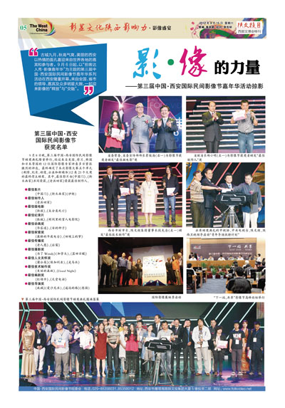 9月8日晚,第三届中国·西安国际民间影像节颁奖典礼隆重举行,经过来自美国、荷兰、韩国和日本等国的12位国际影像专家评委多日紧张激烈的评选,最终确定了本次影像大赛五个单元(剧情、纪实、动漫、公益和新媒体)12类23个大奖的最终得主颁奖。其中,最佳影片由《中国门》、《街头画家》共同荣获,《老兵回家》荣获最佳制作人。