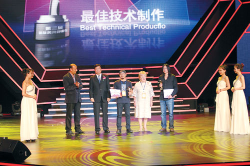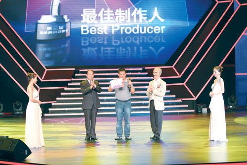 省副省长郑小明(左一)为影像节获奖者颁发“最佳制作人”奖