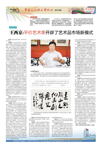 王西京:国企平台做这样的尝试,首先,具有一种导向性的作用。它能引导市场向一种良性的方向发展,引导艺术工作者在努力创作的同时关注本地艺术市场的走向;另外,国企平台做这样的尝试会让此类活动具有一种权威性。书画中心做这一活动具有专业性,因为他们与美术家协会等专业团体合作,有一种学术的背景,这更有利于对艺术市场向健康有序发展起引导作用,是具有积极意义的。