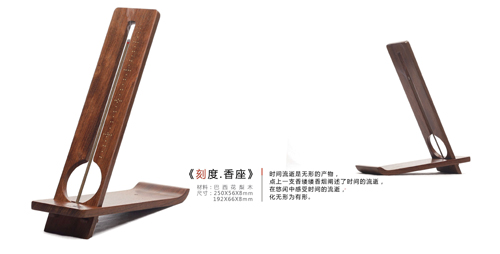 点评:作品体现了中国传统儒家文化的内涵,化无形为有形,利用香的燃烧过程表现时间的流逝,用中国独特的禅意文化表达了时光与人生,一寸光阴一寸金的意义,表现新颖,材质环保。