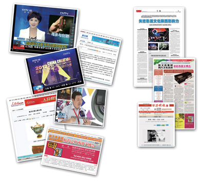 本届文博会期间,陕文投集团系列活动引起了国内外新闻媒体的充分关注,共吸引了超过100家境内外媒体、200多名记者参与报道。新华网、人民网、中央电视台、凤凰网、搜狐网、《陕西日报》、《三秦都市报》、《华商报》等中央及省内外媒体围绕陕文投集团场馆和陕文投策划举办的“第三届中国·西安国际民间影像节”、“首届‘中国创意’产品设计大赛”、“2012西洋古董·艺术品博览会”以及“好画谁来买——陕西书画中心平价艺术季”四大主题活动,进行了广泛的宣传和报道。平面媒体发稿超6万字,网络媒体发文超10万字,网络搜索量高达1576万次,有效提升了陕文投集团的影响力。