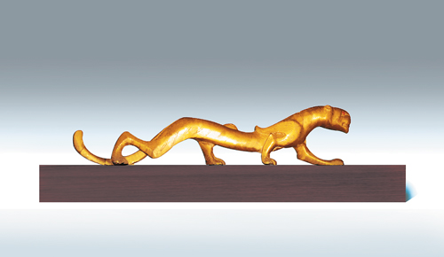文化是生活的凝练,是品位的升华。作为中华民族的发祥地,陕西是无数中国人的精神故乡,陕文投文仿公司依托陕西丰厚的文物文化资源,研发了一系列适应现代生活理念、符合现代生活需求的文物复仿制品和创意衍生品,使古老的文物焕发出了新的时代光彩。陕文投文仿公司在文物复仿制品和创意衍生品的研发上沿袭了系列化、主题化、实用化、艺术化、时尚化的原则,选取典型突出,底蕴深厚、特色鲜明、与现代人的审美情趣与生活理念、生活方式有所契合的精品文物,以最能体现文物价值的适当材质、功能等形式进行开发。2012年,陕文投文仿公司重点开发了汉主题和唐主题两大系列文化产品。瓦当是汉代的标志符号,具有文学、艺术、历史等多重内涵,陕文投文仿公司借此开发了银当汉瓦系列产品,并进一步提升产品的附加值,以“创新形式、缩小比例”的屏风式组合摆件陈列形式,对“长生无极”、“长乐未央”、“与天久长”、“汉并天下”四款文辞优美、寓意吉祥的瓦当进行二次开发;对于汉鎏金翼虎,因其本身器形十分完美,故而只进行了材质、大小的变化,对外观并未作过多改变,最大限度地发挥了原文物的观赏价值;对于唐代的鎏金双蜂团花纹镂空香囊,原文物本为熏香用具,此次则增添了精油功能,使中国传统的熏香文化与现代生活做了精妙对接,深度传扬了中国传统文化与生活方式。此外,陕文投文仿公司还放宽眼界、深入探寻,根据陕西神木出土的战国匈奴王族重要冠饰金冠瑞兽,开发了具有浓郁陕西地方特色和少数民族风韵的文物复仿制品。