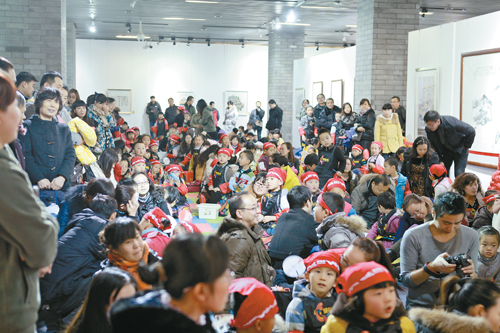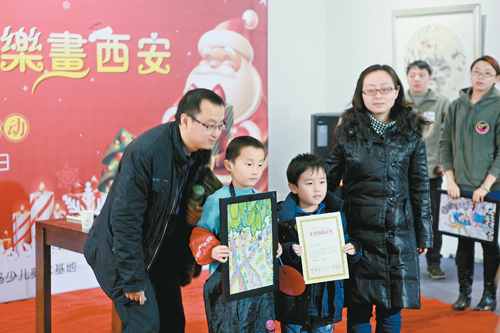 2012年12月23日,由陕西书画艺术品交易中心、西安儿童福利院携手我省最大的少儿美术培训机构——“缤纷鸟少儿美术基地”共同举办的2012“艺术圣诞·乐画西安”大型亲子活动在陕西书画中心1号展厅举行,120个家庭走进书画中心,共计260人参加了本次活动。