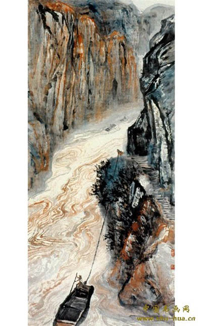 石鲁 《逆流过龙门》 1960年 141cm x66cm