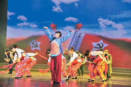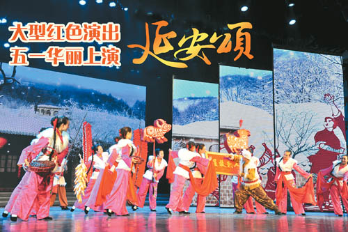 本报讯(通讯员 李小波) 5月1日的夜晚,延安大礼堂(原陕甘宁边区大礼堂)剧院内传出观众的阵阵掌声和喝彩声,备受关注的大型红色演出《延安颂》2013年演出季正式上演了。