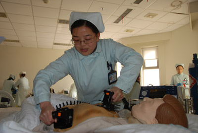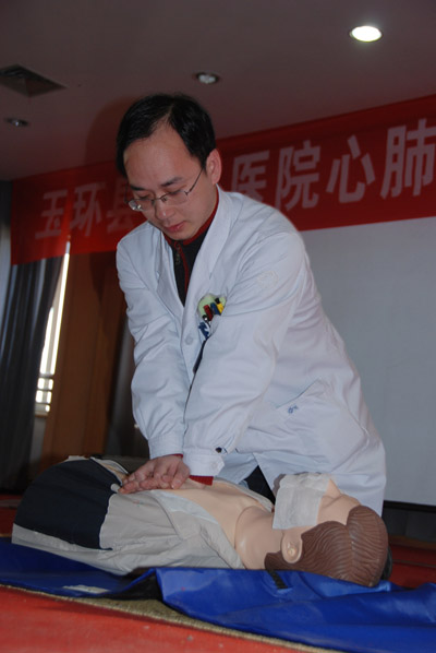 为达到这一目标,我院自上阶段开始,分批对医疗、护理、药学、检验等600多位卫技人员进行急救技能培训。先是学习“2010版心肺复苏指南”、“气道管理技术”和“除颤仪使用与心律失常处理”等,并通过理论考试检测掌握程度。其次对各科室骨干成员培训,再以点带面展开全员培训。最后量化考核,并适时进行现场演练。 黄月红/摄