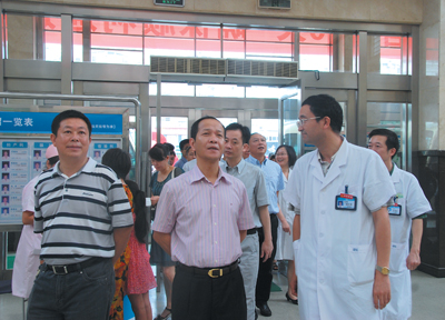 ▲8月30日上午9:30许,县委书记张加波(中)一行来到我院调研,了解了医院发展概况。并强调,医院要在做优、做强品牌上下功夫,形成有自己特色的专科门诊,加强医疗卫生队伍建设,采取各种形式加快人才培训,提高医疗整体水平。 黄月红/摄
