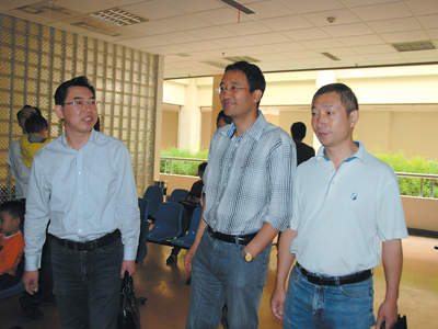 本报讯 10月18日上午,县卫生局局长赵天杰(左)、副局长庄文辉等一行来我院调研。