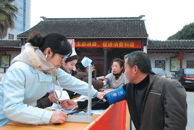 3月15日,我院派出内科、外科等科室医护人员参加县工商局、县消保委组织举办的“消费与民生”2011年纪念“3·15”国际消费者权益日宣传服务活动,为群众义诊。