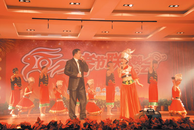 演出在温馨的祝福声为联欢晚会画上了句号。整个晚会精彩纷呈,高潮迭起,给人留下了难忘的印象。 (黄月红)