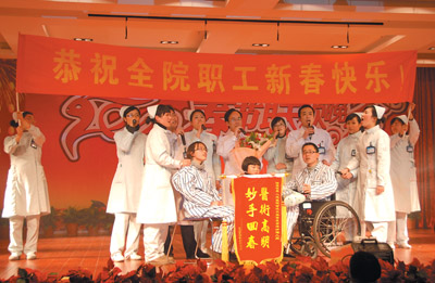 本报讯 1月28日晚,我院多功能厅欢声笑语,全院职工欢聚一堂,在这里举行2011年春节联欢晚会。