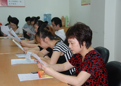 自4月份以来,我院各部门开展了“诵《弟子规》、扬真善美”活动。图为挂号收费处工作人员正在诵读《弟子规》。