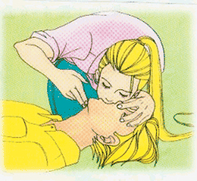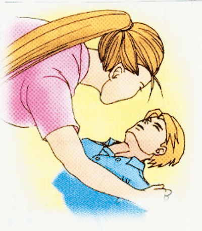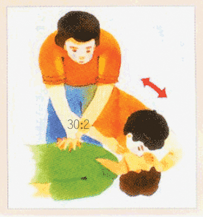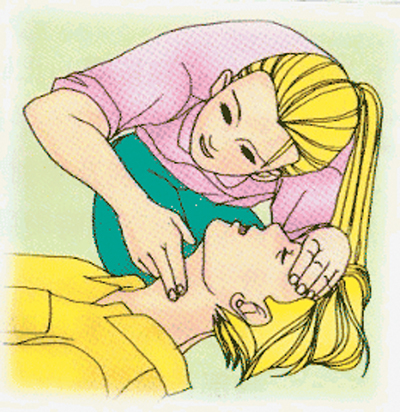 7. 若无呼吸,每5秒给一口气直到有呼吸,直到专业人员接手