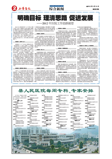 县人民医院每周专科、专家安排