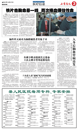 笔者从急救中心获悉,入冬后,医院脑血管疾病急诊量较天气暖和时明显增加。其中,老年高血压病人突发脑溢血、脑梗死的占多数。12月份以来,急救中心收治的35位急诊重病人中,有16人是因“脑卒中”入院,发病年龄大都在40岁以上。