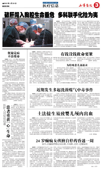 本报讯 近日,一老人便秘,拥挤的肠道被挤破,腹腔内都是干结的大便,经抢救转危为安,但老人失去了排便功能。