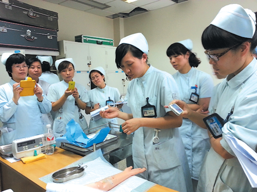 7月,我院对全院护理人员进行了护理技术操作培训考核,做到人人达标,个个过关。培训考核项目包括心肺复苏、心电监护、微泵、护理评估、气管内吸痰、PICC管护理等六项操作。图为带教老师操作示范,对每项操作的每一个步骤进行细化,并对操作过程中的重点、难点和注意事项边示范边讲解。医院还将示范操作录制成视频,供各科室护理人员共享。