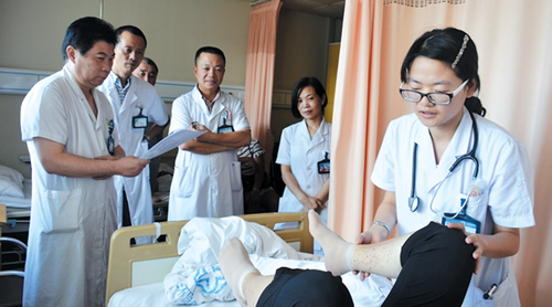 9月底,我院14位住院医师完成三年规范化培训回院,医院对他们进行了独立上岗前综合能力评估。考核合格的,正式走上临床岗位;考核不合格的,医院对其进行了调岗,不再当临床医生。图为独立上岗前综合能力评估现场。 科教科 林爱芳